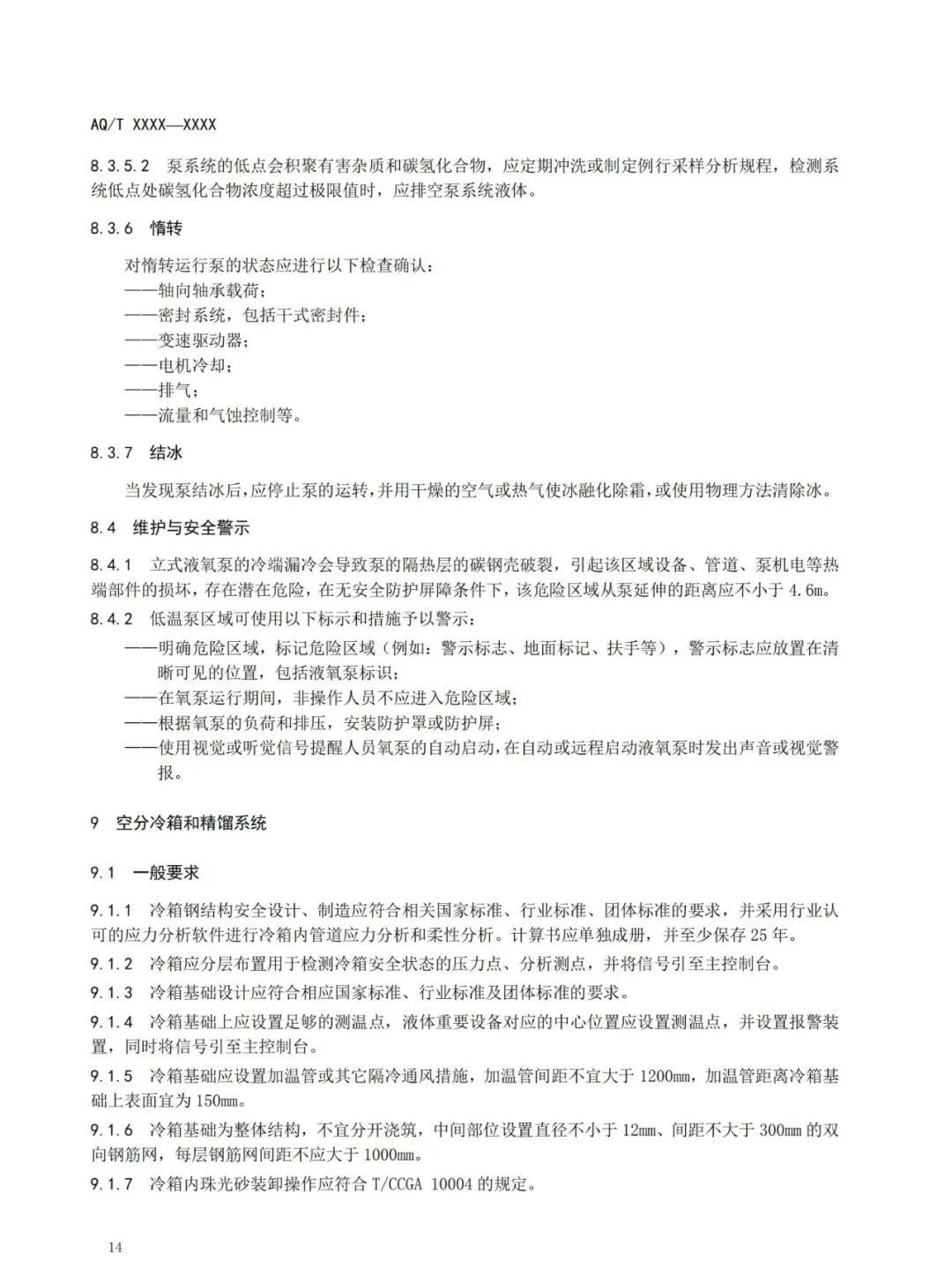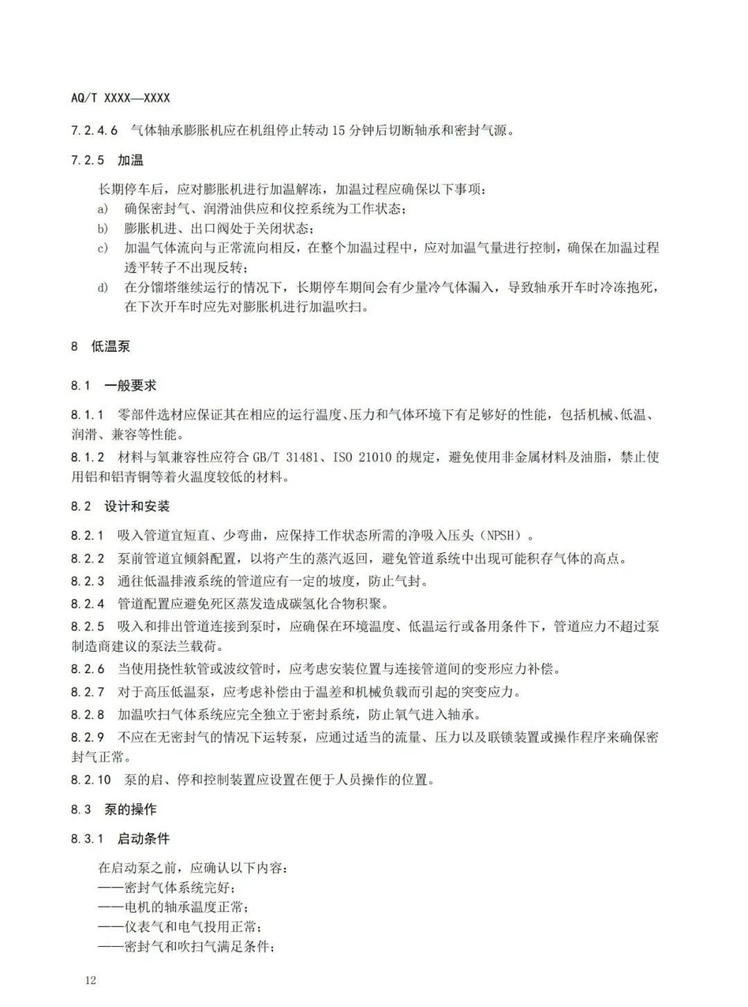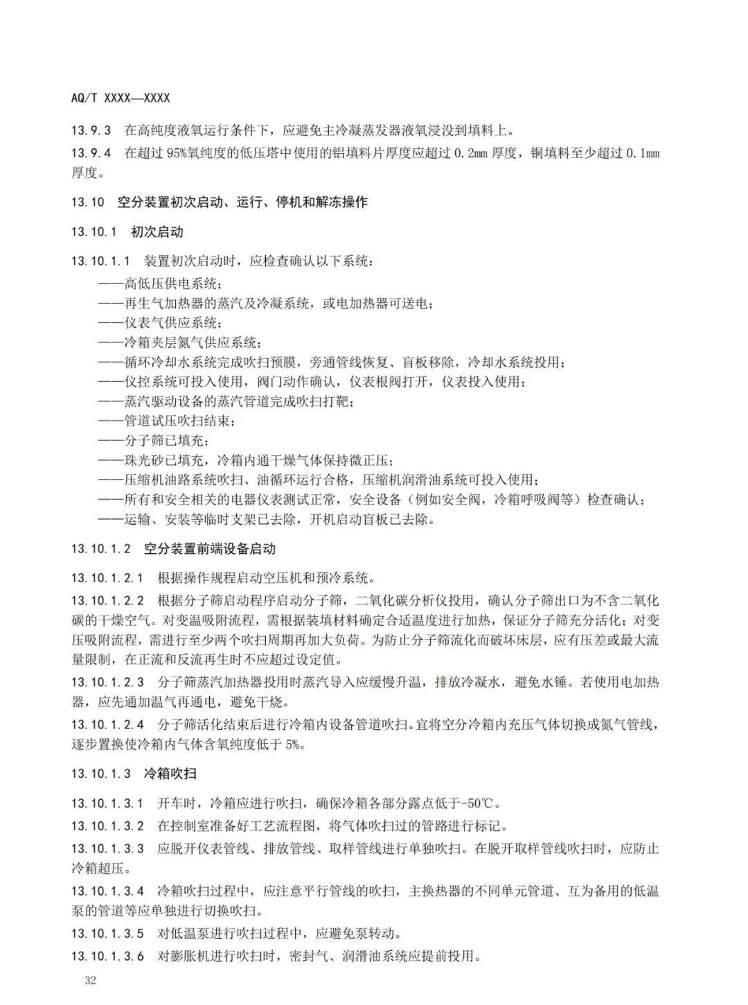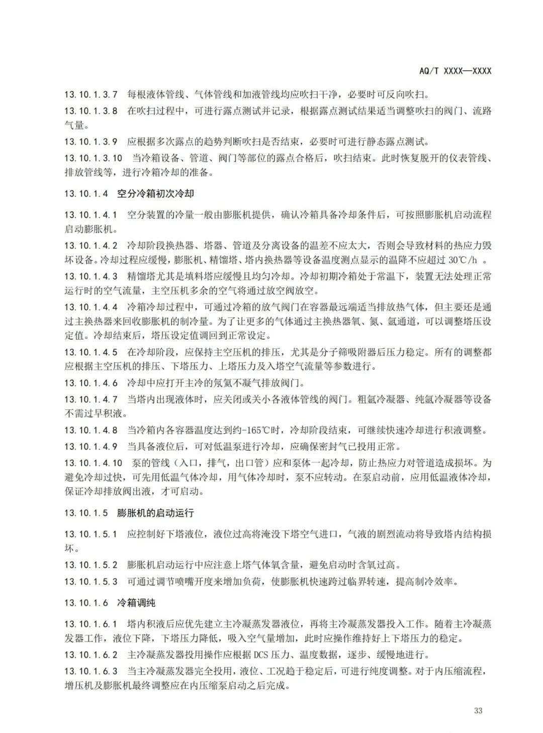 本標(biāo)準(zhǔn)規(guī)定了深冷空分裝置的總體布局、吸入空氣質(zhì)量控制、壓縮機(jī)、膨脹機(jī)、低溫泵、空分冷箱和精餾系統(tǒng)、產(chǎn)品儲(chǔ)運(yùn)、稀有氣體裝置、控制系統(tǒng)、安全操作運(yùn)行、人員管理與事故應(yīng)急處置等內(nèi)容的要求。