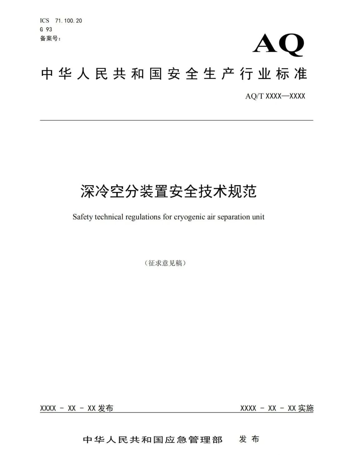 應(yīng)急管理部對《深冷空分裝置安全技術(shù)規(guī)范》等兩項(xiàng)標(biāo)準(zhǔn)征求意見