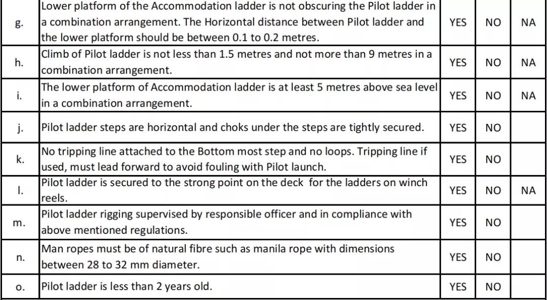 ·所有引航梯的使用年限必須小于2 年。引航員/訪問港口的人員,可能會(huì)要求查看引航梯建造證書。