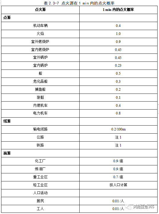 根據(jù)《化工企業(yè)定量風險評價導則》(AQ/T 3046-2013)附錄G,立即點火概率與裝置類型、物質(zhì)種類及泄漏(釋放)有關,固定裝置可燃物質(zhì)泄漏后,立即點火概率見下表。