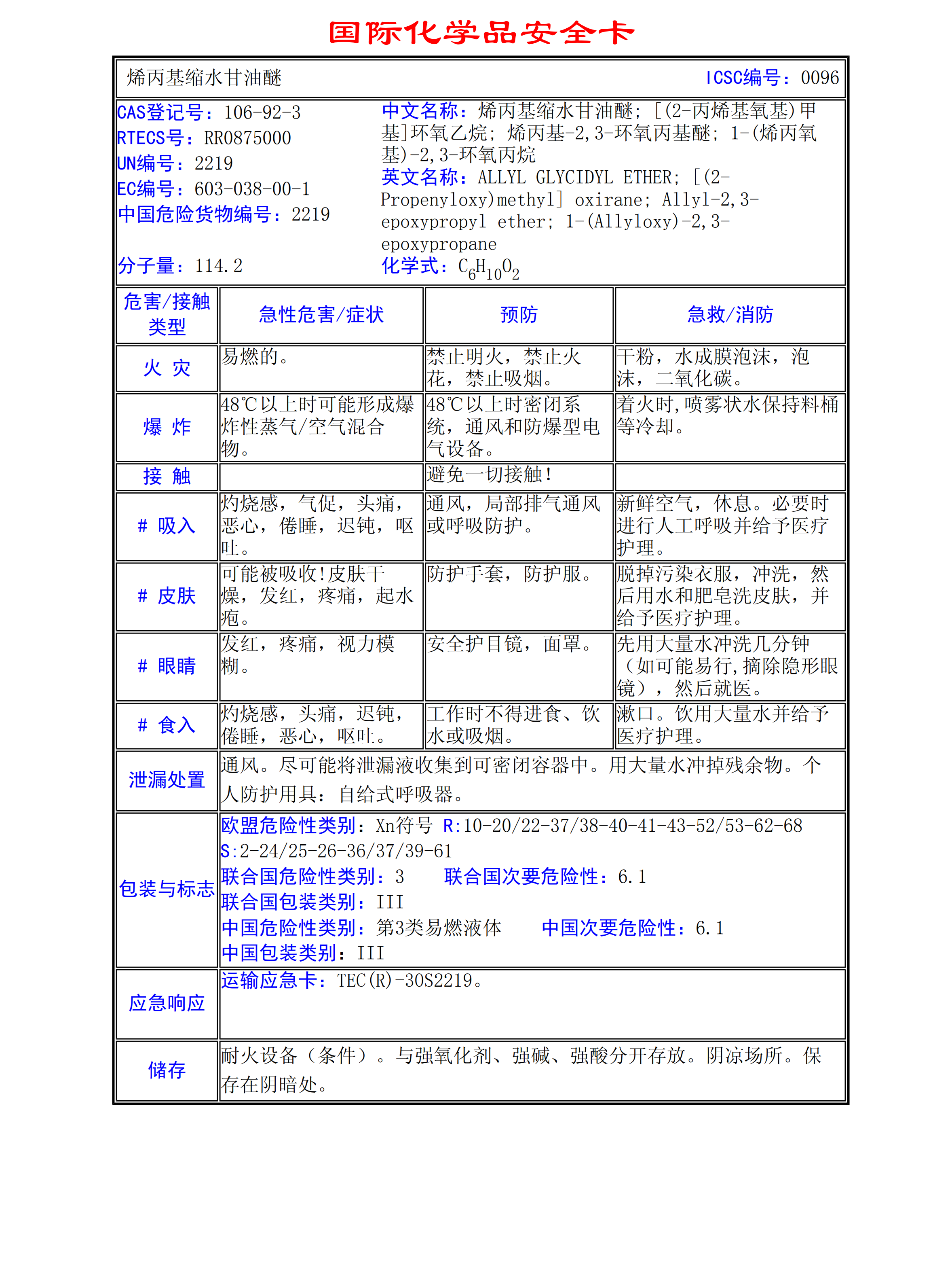 烯丙基縮水甘油醚MSDS