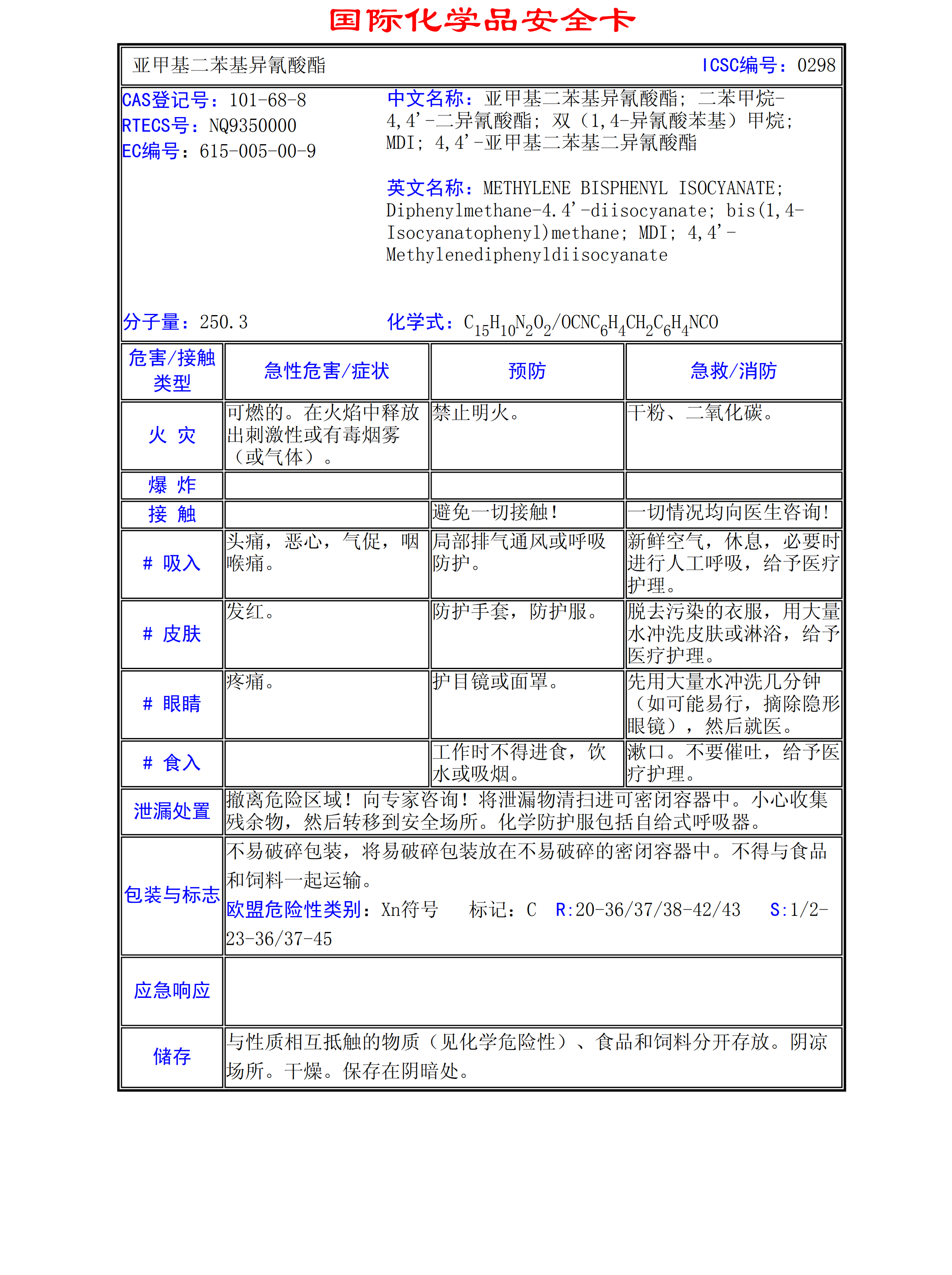 亞甲基二苯基異氰酸酯MSDS