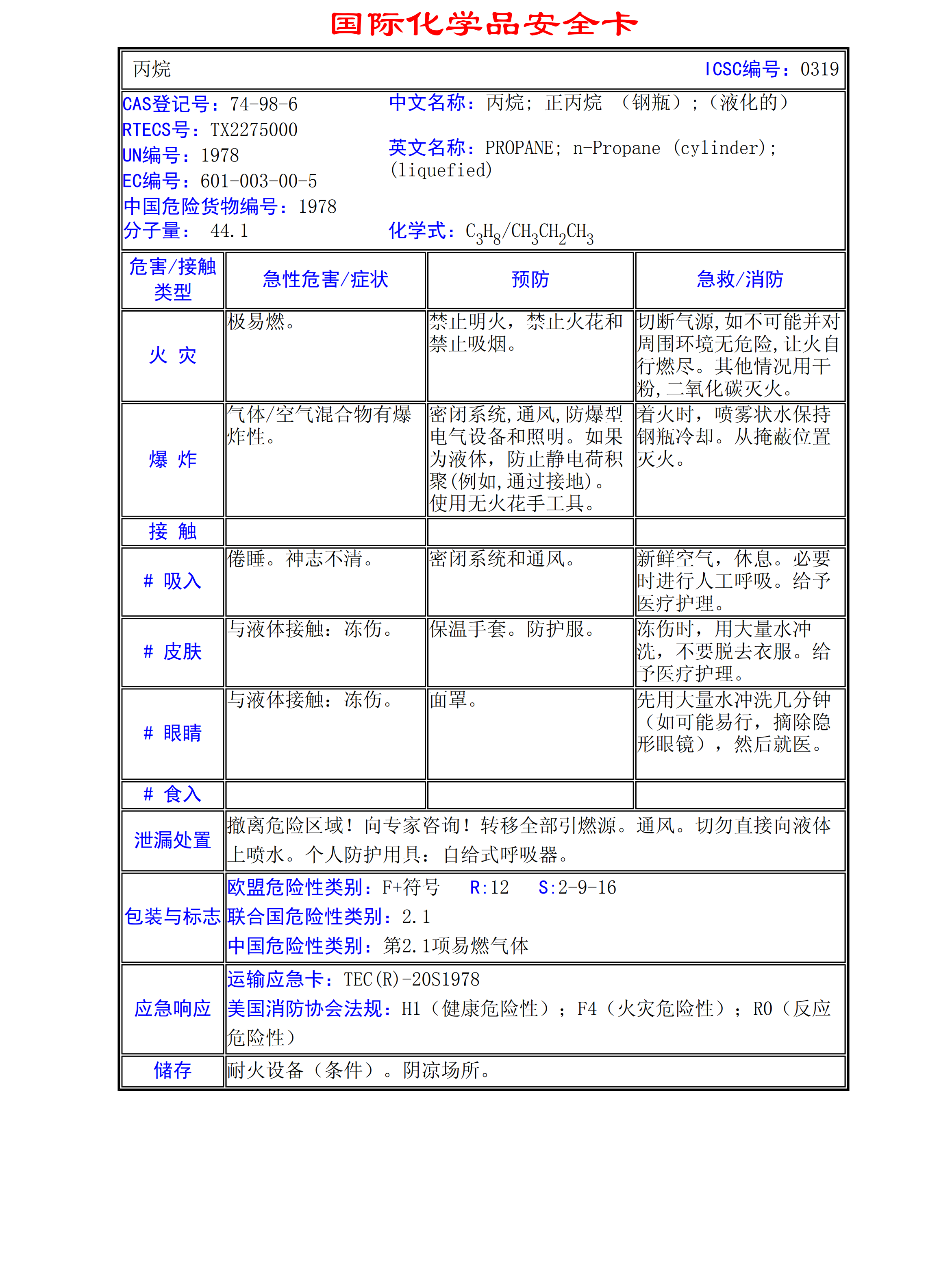丙烷MSDS