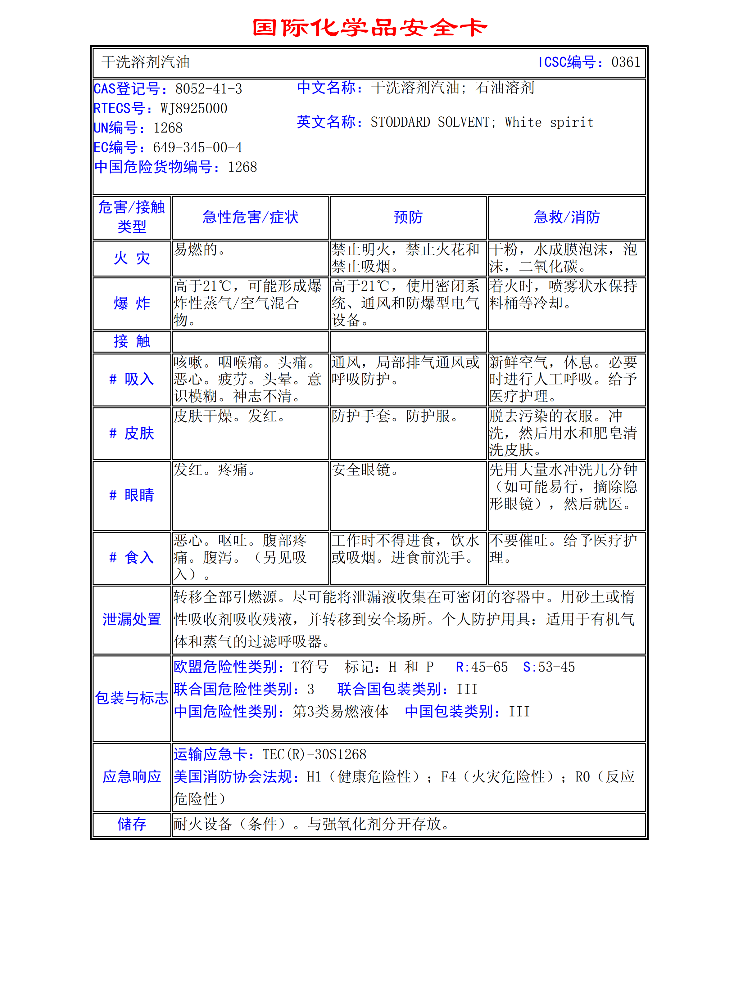 干洗溶劑汽油MSDS
