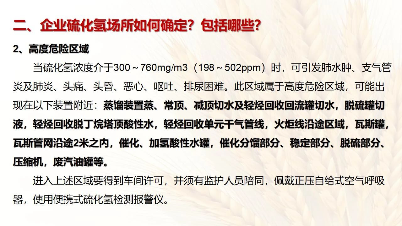1.產(chǎn)生硫化氫的生產(chǎn)設(shè)備應(yīng)盡量密閉,并設(shè)置自動報警裝置(不能根據(jù)臭味來判斷危險場所硫化氫的濃度,硫化氫達(dá)到一定濃度時會導(dǎo)致嗅覺麻痹)。