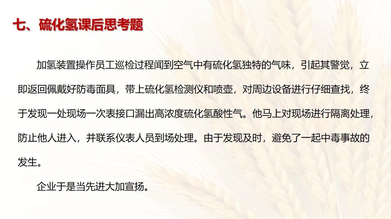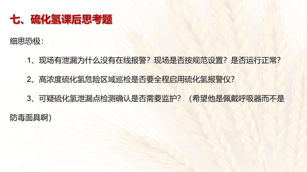 (6)發(fā)現(xiàn)硫化氫濃度高,要先報告,采取一定防護(hù)措施后,才能進(jìn)入現(xiàn)場檢查和處理。