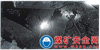 中間巷底板高出工作面刮板輸送機(jī)刮板槽1.2m左右。中間巷以里5m處砰石垛接頂未坍塌,砰石垛高2m、寬2m、長(zhǎng)5m,右側(cè)距幫約有0.5m空間。中間巷巷口有錨桿、鋼帶等支護(hù)材料,裸露兩根錨桿有摩擦磨損及切割斷裂痕跡(見圖3)。