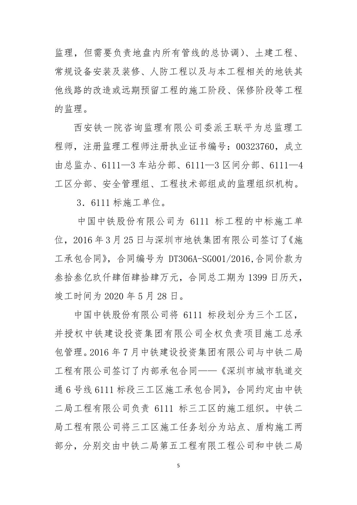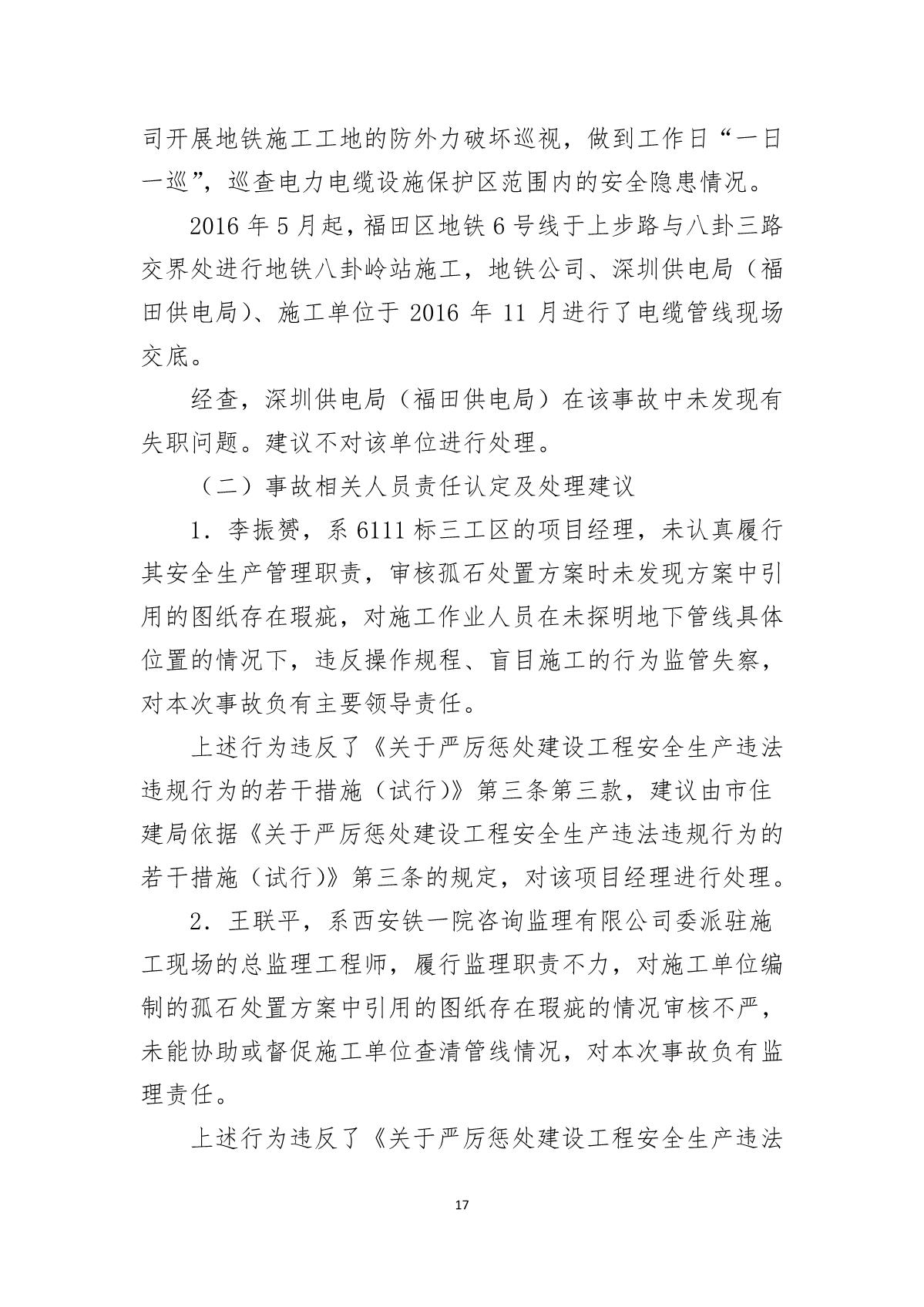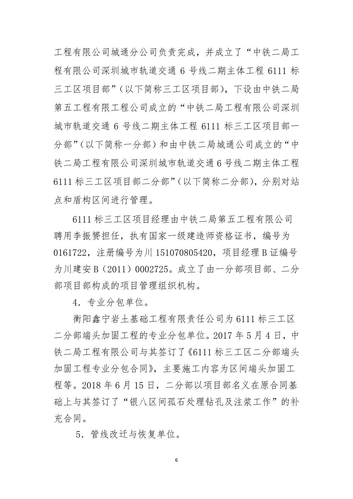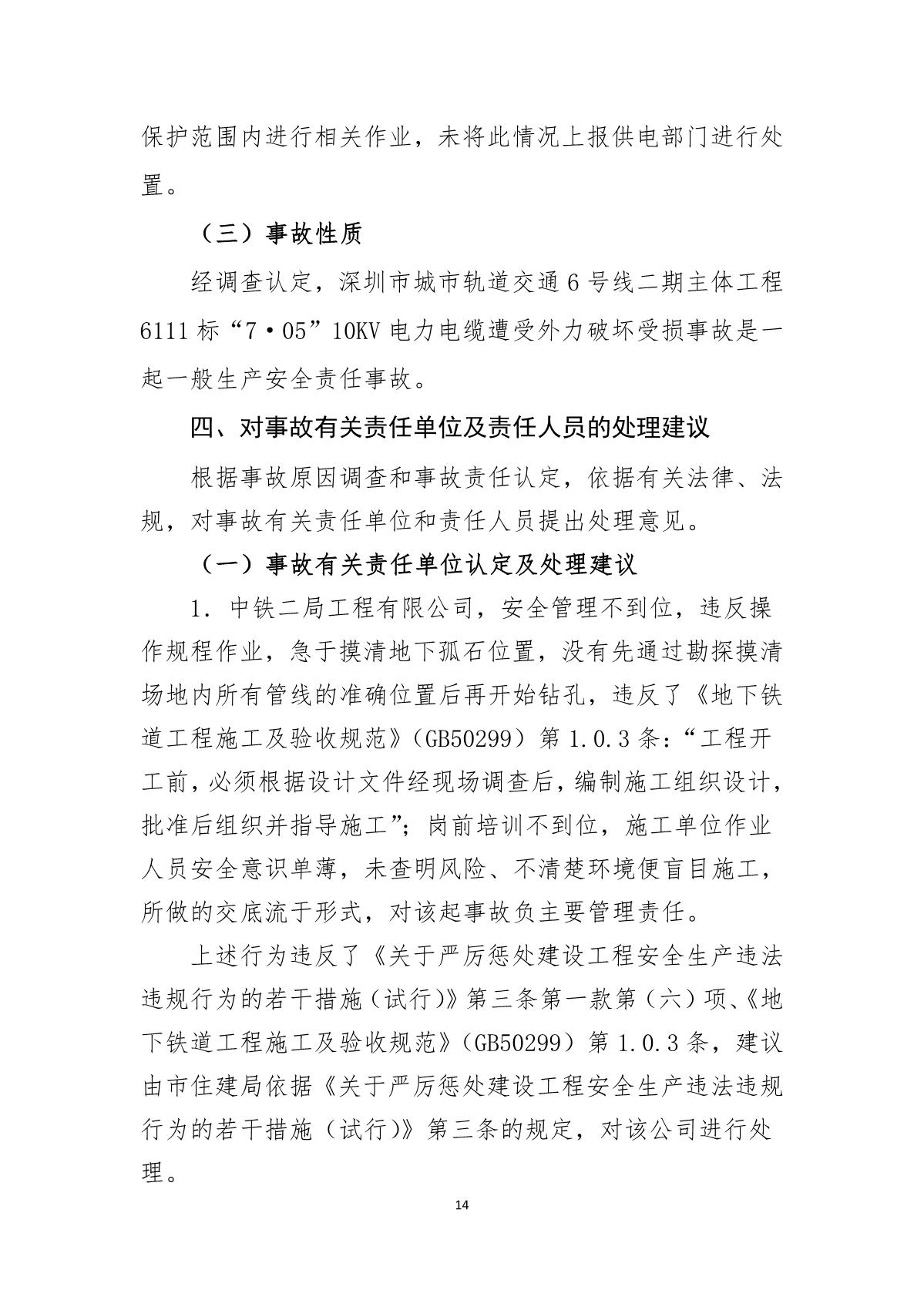 福田區(qū)人民政府關(guān)于深圳市城市軌道交通6號線二期主體工程6111標(biāo)“7.05”10kv電力電纜受損事故調(diào)查報(bào)告