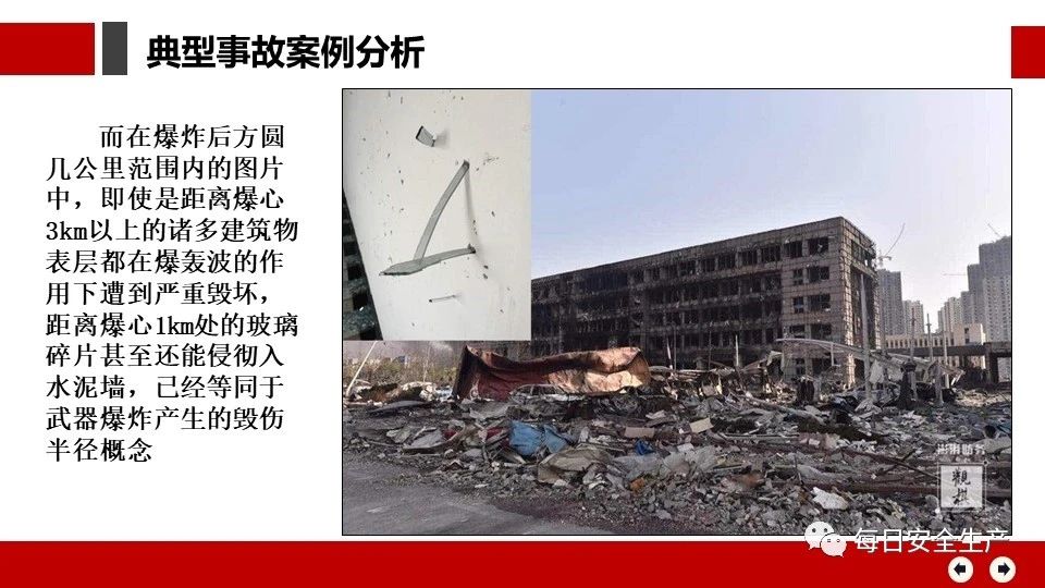 事故造成三車間南側(cè)墻體自東向西約32米發(fā)生倒塌,鋼筋混凝土結(jié)構(gòu)(橫梁、立柱)向南側(cè)鼓包變形嚴(yán)重,混凝土破碎,露出里面的鋼筋。三車間東側(cè)墻體向東傾斜(未倒塌),車間防爆區(qū)與非防爆區(qū)的隔墻部分墻體炸塌,面積約16m2,該墻其它墻體均向東傾斜,未倒塌。三車間北側(cè)墻體自東向西(車間防爆區(qū)與防爆區(qū)隔墻為起算點(diǎn))約28米發(fā)生倒塌,鋼筋混凝土結(jié)構(gòu)(橫梁、立柱)向南側(cè)鼓包變形嚴(yán)重,混凝土破碎,露出里面的鋼筋。