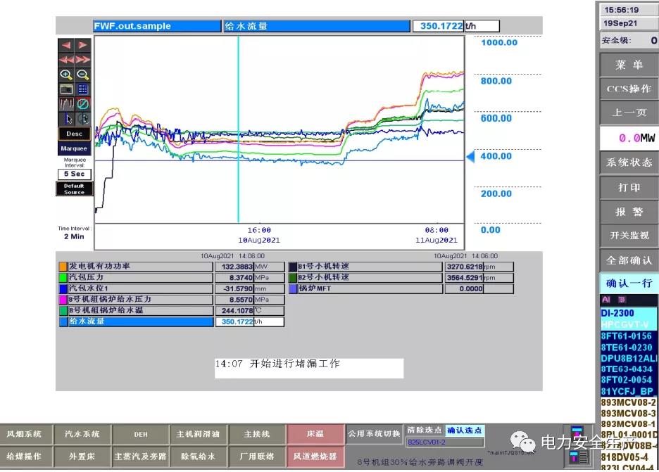 5.調閱 9 月 14 日機組運行參數(shù),帶壓堵漏工作開始前沒有采取降負荷、降給水壓力及溫度等安全預控措施,也沒有維持運行參數(shù)穩(wěn)定的具體措施。