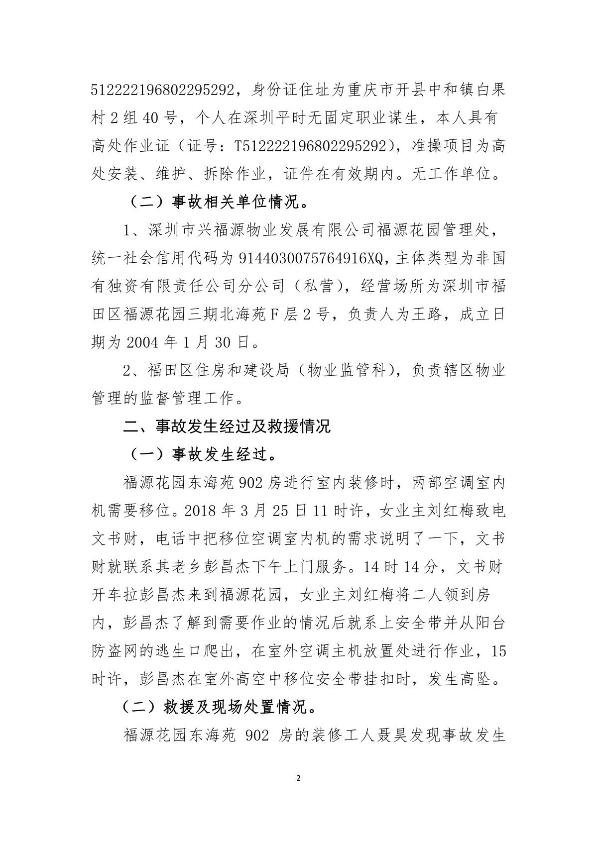 “1.18”福田區(qū)禮園工程項目死亡事故調(diào)查報告