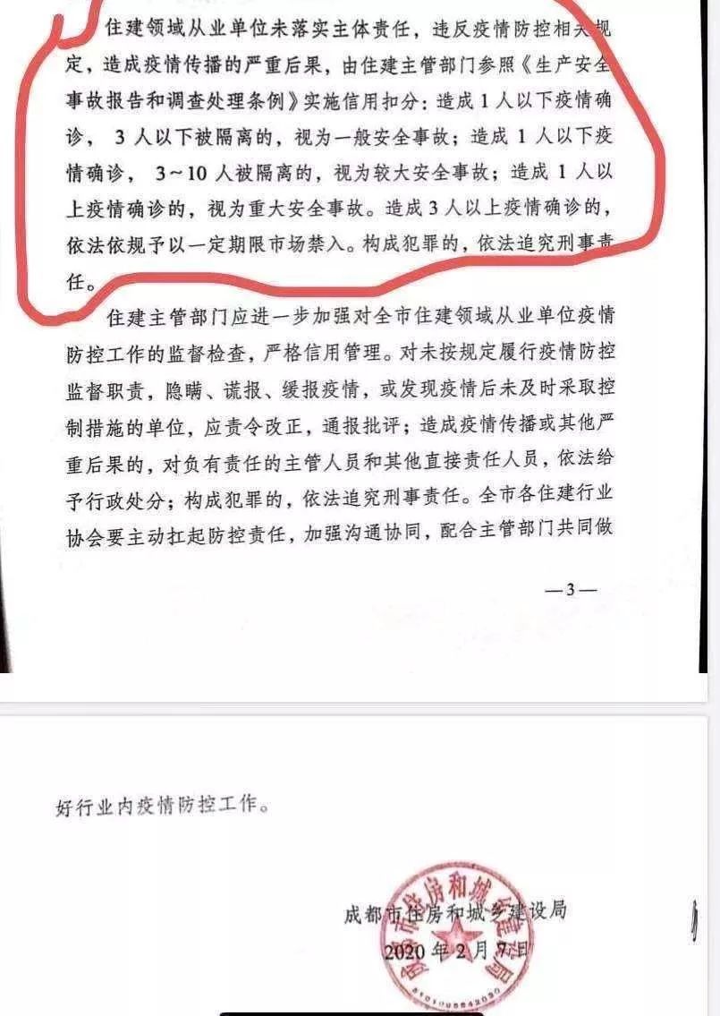 2月7日,成都市住房和城鄉(xiāng)建設(shè)局發(fā)布了《關(guān)于將新型冠狀病毒感染的肺炎疫情防控工作納入住建領(lǐng)域市場主體信用評價管理的通知》。