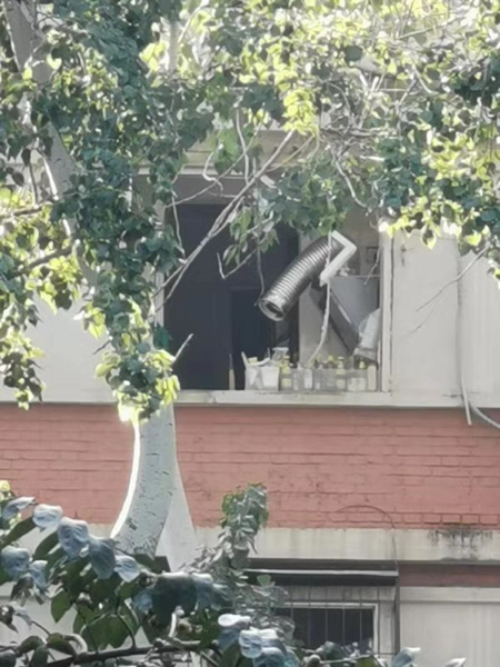 記者看到,發(fā)生爆炸的房間位于居民樓東側,窗戶已經(jīng)被炸飛。受到爆炸波及,同側四層和三層住戶家的玻璃窗也出現(xiàn)了不同程度的損毀。