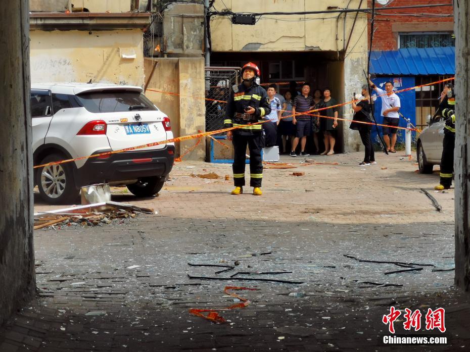 爆炸造成路邊多輛車(chē)輛受損,附近居民樓玻璃被沖擊波震碎。事故原因正在調(diào)查當(dāng)中。圖為消防人員在清理附近居民樓存在隱患的玻璃窗。中新社記者 范英杰 攝