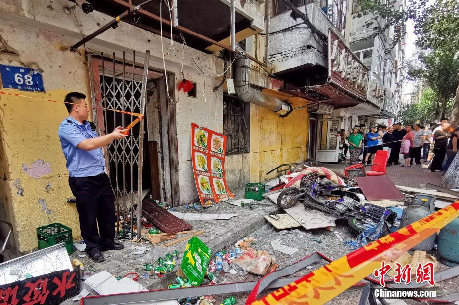 8月5日早8時(shí)左右,位于哈爾濱市道里區(qū)安順街的一家餐館發(fā)生疑似燃?xì)獗?,現(xiàn)場(chǎng)一片狼藉,爆炸震碎二樓樓板,一老人墜落受傷,餐館老板娘受傷嚴(yán)重,目前兩人已被送往醫(yī)院就醫(yī)。圖為事發(fā)餐館門(mén)口。中新社記者 范英杰 攝