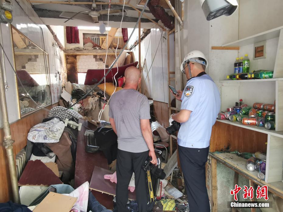 8月5日早8時(shí)左右,位于哈爾濱市道里區(qū)安順街的一家餐館發(fā)生疑似燃?xì)獗?,現(xiàn)場(chǎng)一片狼藉,爆炸震碎二樓樓板,一老人墜落受傷,餐館老板娘受傷嚴(yán)重,目前兩人已被送往醫(yī)院就醫(yī)。爆炸造成路邊多輛車(chē)輛受損,附近居民樓玻璃被沖擊波震碎。中新社記者 范英杰 攝