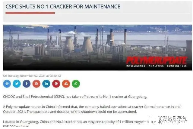 據(jù)消息人士透露,該裂解裝置目前已下線,并將進(jìn)行持續(xù)一周的維護(hù),殼牌已經(jīng)告知部分乙烯和丙烯買家供應(yīng)減少。