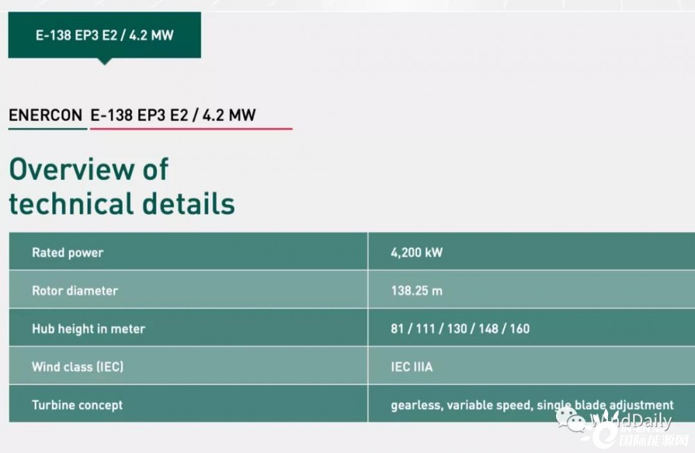 Enercon E-138 EP3風電機組技術參數(shù):