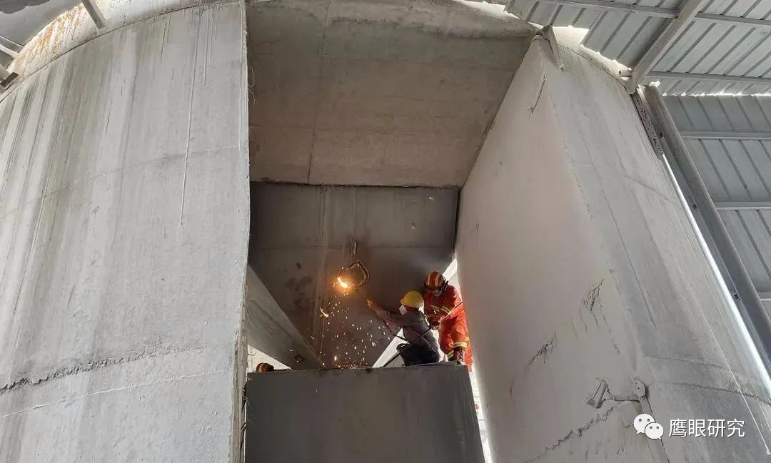 事發(fā)時(shí),被困工人發(fā)現(xiàn)石灰斗罐下料口被堵塞,便進(jìn)入斗罐底部開展疏通工作,罐壁四周的石灰塊突然崩塌,造成該工人當(dāng)場(chǎng)被石灰料埋壓,埋壓深度約1.7米。