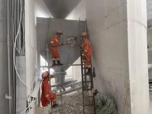 消防救援人員趕到現(xiàn)場(chǎng)后,經(jīng)偵查和詢問得知,石灰斗罐罐體約2米深,裝有約5立方米石灰料。