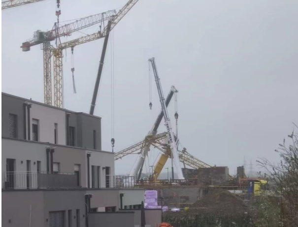 2022年4月9日盧森堡首都一在建工地塔吊施工作業(yè)時發(fā)生倒塌事故、傷亡情況不明、具體事故原因還在調(diào)查中、以官方公布為準、安全生產(chǎn)人人有責(zé)、嚴重違章超載作業(yè)。