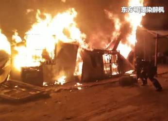 陽谷一板房突發(fā)火災,消防員奔向火場抱出煤氣罐