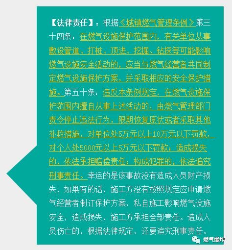 2018年11月11日上午7時(shí)許,青島市北區(qū)嘉定路16號(hào)保利里院里小區(qū)5號(hào)樓發(fā)生一起居民燃?xì)忾W爆事故,事故造成2人受傷以及多戶居民財(cái)產(chǎn)損失。據(jù)報(bào)道,事故原因調(diào)查及善后工作正在進(jìn)行中......【爆炸新聞】10多層樓玻璃被炸飛!2人受傷!青島一小區(qū)發(fā)生燃?xì)忾W爆事故!這波知識(shí)必須要知道!?天然氣清潔高效,其推廣使用,給市民帶來了極大的方便。但因燃?xì)夤芫W(wǎng)遍布城市地下區(qū)域,管道伸入到居民家中,居民又是直接操作者使用者,燃?xì)獍踩珕栴}就成了涉及每個(gè)人的問題。無論是政府、燃?xì)饨?jīng)營企業(yè)、還是居民用戶都應(yīng)格外重視燃?xì)獍踩岣呷細(xì)獍踩?zé)任意識(shí),避免事故的發(fā)生。為此,應(yīng)在查明“11.11青島市北區(qū)保利里院里小區(qū)燃?xì)忾W爆事故”原因的基礎(chǔ)上,落實(shí)各主體責(zé)任,并依法維護(hù)各自權(quán)益。律師根據(jù)多年既往案例,對(duì)燃?xì)馐鹿噬婕暗姆蓡栴}進(jìn)行評(píng)析,希望能為相關(guān)責(zé)任主體提供有益的法律建議。01發(fā)生燃?xì)馐鹿蕰r(shí),各方應(yīng)如何進(jìn)行責(zé)任自查?1、燃?xì)夤拘枰圆榈膬?nèi)容包含但不限于:在為用戶開通燃?xì)鈺r(shí)是否進(jìn)行了用氣安全教育,是否定期進(jìn)行用氣安全宣傳;是否定期入戶安檢,用戶是否在安檢單上簽字確認(rèn),發(fā)現(xiàn)隱患后是否及時(shí)補(bǔ)檢,用戶是否配合隱患整改;若用戶安裝有燃?xì)鈭?bào)警器,燃?xì)鈭?bào)警器是否連接電源,燃?xì)鈭?bào)警器是否連接電磁閥?燃?xì)鈭?bào)警器安裝是否符合《城鎮(zhèn)燃?xì)庠O(shè)計(jì)規(guī)范》;用戶的燃?xì)馄骶撸ㄈ細(xì)庠罹?、燃?xì)鉄崴鳎┦欠翊嬖诔谑褂?,安裝人員及單位是否具備相應(yīng)資格、資質(zhì);用戶是否存在裝修過程中未通知燃?xì)夤?,私改燃?xì)夤艿?、包埋燃?xì)夤艿馈⑷細(xì)庠O(shè)施作為負(fù)重支架堆放、懸掛物品或者將燃?xì)夤艿雷鳛殡娖髟O(shè)施的接地導(dǎo)體等隱患;用戶是否規(guī)范用氣,用氣后及時(shí)關(guān)閉灶前閥;用戶是否存在自傷自殘等情況;是否投保相關(guān)保險(xiǎn)等。2、事故受害方責(zé)任追究過程中需要考量的內(nèi)容包含但不限于:燃?xì)夤驹谥脫Q通氣時(shí)是否履行了安全宣傳教育;燃?xì)夤臼欠衩磕甓既霊舭矙z并對(duì)燃?xì)怆[患提出整改意見;燃?xì)夤景惭b燃?xì)庠?、燃?xì)鈭?bào)警器和電磁閥是否符合國家規(guī)范;燃?xì)夤咎峁┑娜細(xì)庠?、燃?xì)鈭?bào)警器和電磁閥是否質(zhì)量合格;其他需要注意的問題。3、燃?xì)庵鞴懿块T履責(zé)的重點(diǎn)內(nèi)容:1)作為燃?xì)庵鞴懿块T,在事故發(fā)生后,進(jìn)行事故調(diào)查,協(xié)調(diào)燃?xì)夤?、受害人和公安、消防、居民辦事處等部門,委托專家組出具事故調(diào)查的專家分析意見,客觀公正的處理善后事宜,是本部門的法定職責(zé);2)作為此次事故調(diào)查的主管部門,應(yīng)嚴(yán)格依法依規(guī)處理,還應(yīng)注意事發(fā)現(xiàn)場第一手資料的留存;3)嚴(yán)格遵守法定程序建立事故處理檔案,為今后司法處理保存證據(jù)材料,避免被燃?xì)獍讣芎θ嘶蚱渌黧w投訴;4)依法依規(guī)行使事故調(diào)查職責(zé)過程中,除了追求效率,還應(yīng)注意保護(hù)各方當(dāng)事人的合法權(quán)利。例如,涉及鑒定應(yīng)提 前通知各方當(dāng)事人,證據(jù)的封存、解封應(yīng)通知各方當(dāng)事人到場,涉案相關(guān)信息主動(dòng)公開或依申請(qǐng)公開,選聘事故調(diào)查專家組成員時(shí)應(yīng)留存各專家的資質(zhì)證明等。?02燃?xì)馐鹿拾l(fā)生后進(jìn)入訴訟程序的可能結(jié)果分析根據(jù)既往辦案經(jīng)驗(yàn)及既有案例,律師總結(jié)法院裁判觀點(diǎn)如下:1、關(guān)于事故事實(shí)的認(rèn)定,一般以事故調(diào)查專家組出具的專家分析意見為準(zhǔn)。2、在居民燃?xì)獗及讣校細(xì)夤竞苌儆胁怀袚?dān)責(zé)任的情形。3、作為事故的受害方,選擇盡可能多的與事故相關(guān)的被告,越有利于維護(hù)自身權(quán)利。4、司法機(jī)關(guān)在民事責(zé)任領(lǐng)域,一般會(huì)站在同情弱者的角度裁判。5、若燃?xì)獗ㄊ鹿氏等藶楣室庠斐桑袨槿丝赡軙?huì)涉嫌刑事犯罪,罪名包括但不限于爆炸罪、以危險(xiǎn)方法危害公共安全罪等。?案例一12012年7月27日重慶奉節(jié)縣一居民家發(fā)生天然氣意外泄漏事故,發(fā)生事故的居民家中所有家具和電器都被燒毀,窗戶的玻璃已被震爛。爆炸造成一家6人燒傷,最終一人搶救無效死亡。據(jù)網(wǎng)上報(bào)道爆炸是由于天然氣管道與輸氣軟管之間存在縫隙,導(dǎo)致天然氣泄漏引發(fā)的。在該戶家中,發(fā)現(xiàn)新買的燃?xì)庠罹撸莻€(gè)三無產(chǎn)品。該戶的燃?xì)夤艿?,是由兩根軟管接起來的,一根軟管不夠長,中間還用一根硬塑料管連了起來,還使用了膠水來粘接,這是非常危險(xiǎn)的作法,連接的塑料管是硬的,天然氣完全可能因連接處泄漏出來。也許是用戶點(diǎn)了火,也許只是開了某一種電器的開關(guān),就引起了天然氣爆炸,隨后的火焰擴(kuò)散,屋內(nèi)東西全部燒毀。