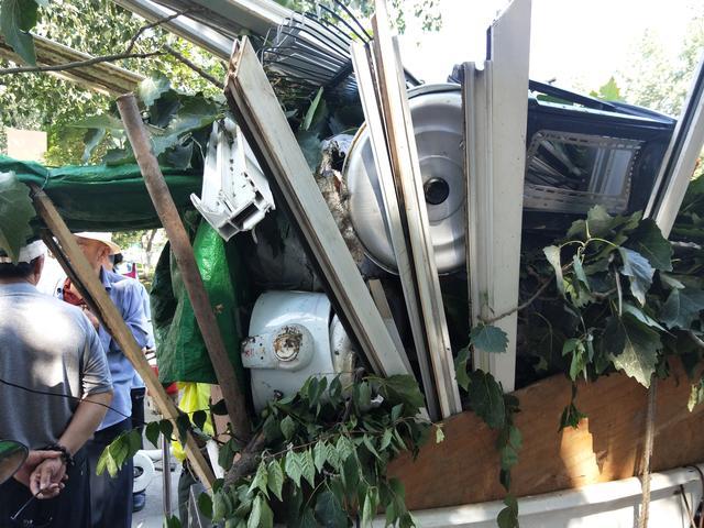 馬路及馬路對面均有大量玻璃散落在地。