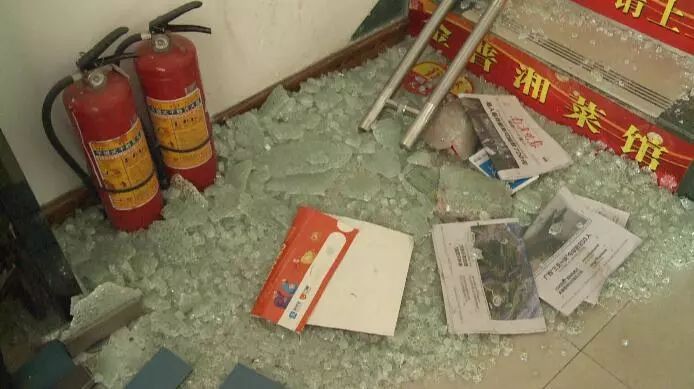 我婆婆就在這里開門出來,馬上就爆炸,飛到里面去了玻璃啊,我掃了這里啊,不然全部是玻璃,樓上的玻璃都爛下來了。