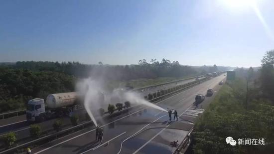 將近20噸的天然氣一旦發(fā)生爆炸后果將不堪設想,消防官兵立即組織將現場群眾疏散至2公里以外,同時交警部門對高速路雙向管制,嚴禁任何車輛和人員接近。這場大火一直燒到了上午7點才漸漸停止,這時貨車已經燒成廢鐵,天然氣罐車的尾部也被燒塌。高速路上散落了一地的汽車零部件,消防官兵先是對現場可燃氣體和有毒氣體進行監(jiān)測,隨后出動水槍不斷對兩車車體進行冷卻。一小時后現場明火基本被撲滅,罐車罐體溫度也下降到40℃以下,路政部門隨即將追尾兩車進行分離。到了上午10點左右,高速公路恢復了暢通。罐車司機表示,當時他是正常在高速公路上行駛。