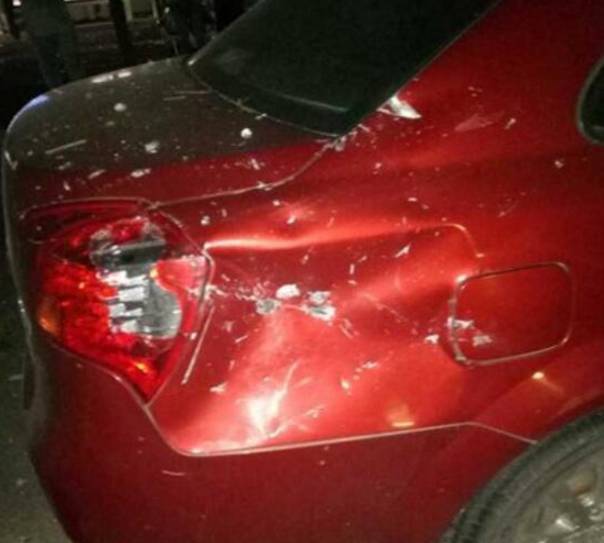記者從現(xiàn)場(chǎng)視頻中可見(jiàn),一家名為 " 誠(chéng)信藥店 " 的店面玻璃門(mén)破損變形,里面的柜臺(tái)和房頂被炸得七零八落,地面一片狼藉。路上和門(mén)外兩輛轎車上散落著碎玻璃,車身因?yàn)樽矒舭l(fā)生凹凸變形,可見(jiàn)當(dāng)時(shí)的沖擊力很大。
